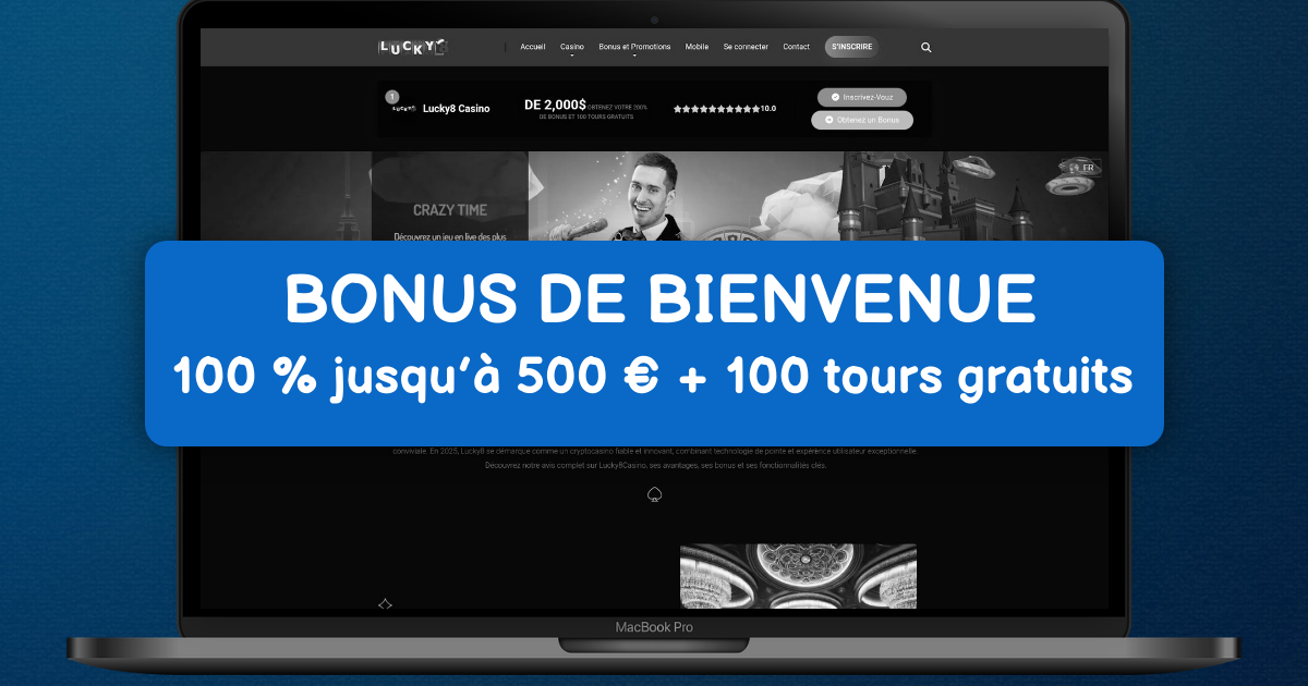 Le bonus de bienvenue Lucky8 se distingue par un format généreux et souvent personnalisé selon le profil joueur. L’offre combine généralement un bonus sur dépôt et des tours gratuits pour jouer aux machines à sous en argent réel, après inscription confirmée. Des exigences de mise s’appliquent sur le bonus et les free spins avant tout retrait, selon les conditions précisées sur le site officiel.